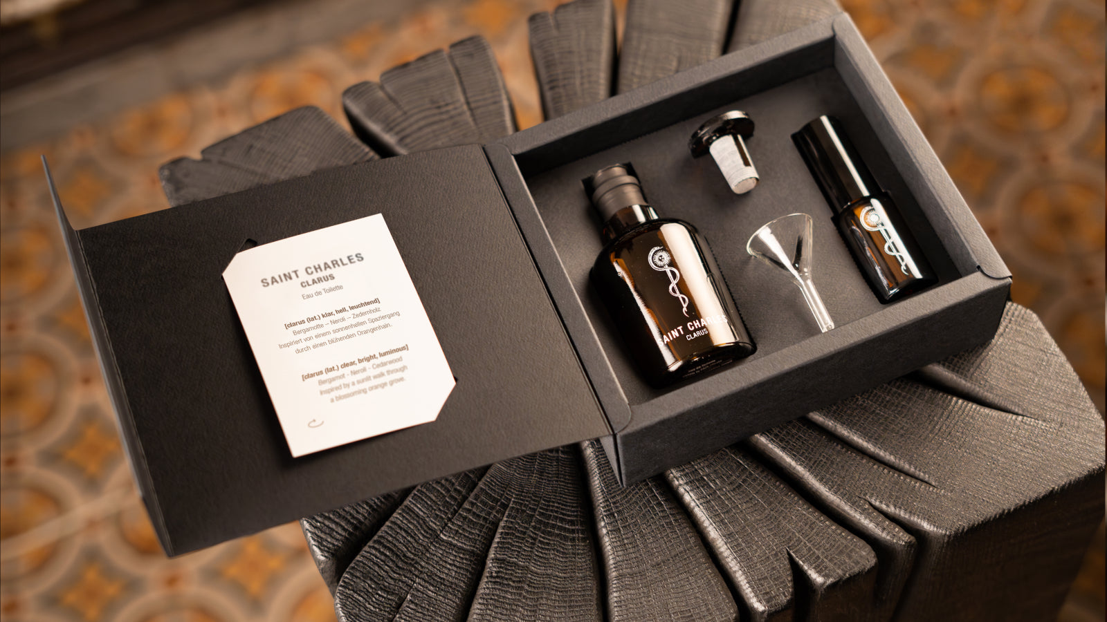 Saint Charles stands for the passion to reinterpret ancient knowledge. In fact, the history of the Perfume art closely connected with the history of the Apothecary Therefore, the creation of an own fragrance line for Saint Charles had been on the wish list for a long time. Together with the Perfumer Paul Divjak three special eaux de toilette were developed, a fusion of apothecary and perfume art. The Latin names and the design of the fragrances recall their alchemical origins.