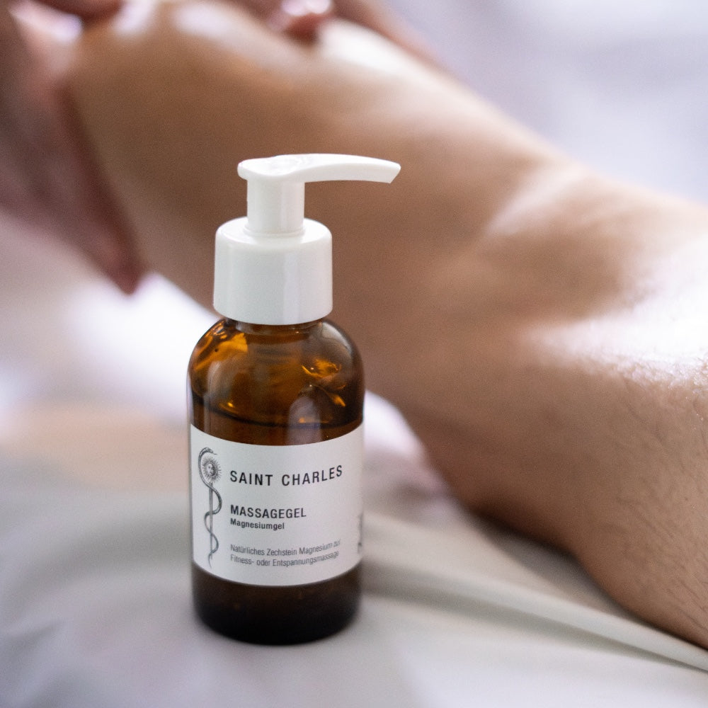 Kathrin empfiehlt aufgrund der einfachen Anwendung ein Magnesiumgel, welches bei Saint Charles in den 3 Varianten Sport, Relax und Pure angeboten wird. Aber auch das reine Magensiumöl eignet sich hervorragend. Alle Produkte sind zu 100% natürlich, ohne chemische Zusätze.